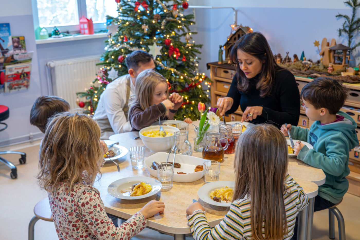 Die Kita St. Judas Thaddäus zeigt, wie Veränderung konkret beginnt: mit einer Köchin, die eine Idee hat, die Kolleg*innen überzeugt, die Leitung und den Träger ins Boot holt und auf deren Unterstützung zählen kann. Wo früher doch öfter mal auf Convenience-Food und Tiefkühlprodukte zurückgegriffen wurde, herrscht jetzt ein neues Selbstbewusstsein in der Küche. Mit dem Kostenrechner bleiben Ausgaben und Bio-Anteil immer im Blick. Brot und Backwaren werden selbstgebacken, beim Einkauf wird verstärkt auf die Saison geachtet und der Speiseplan effizienter geplant.
