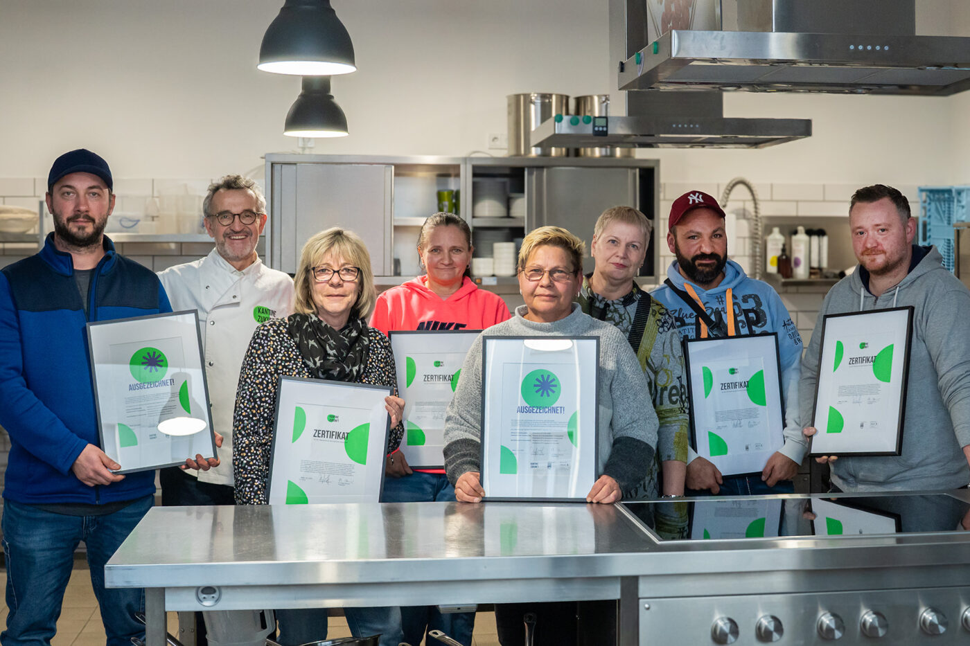 Für die Abschlüsse kamen Küchenteams, Kitaleitungen und Geschäftsführung in unserer Trainingsküche zusammen, um die Ergebnisse zu würdigen.